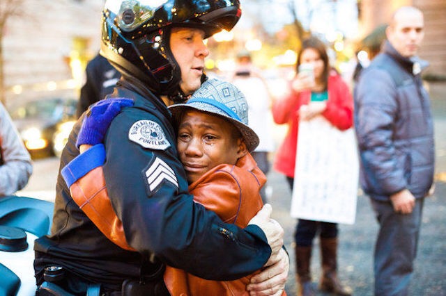 The racist cop and the violent black are on one side. The rest of you are on the other. Recognize that good-hearted blacks and good-hearted policemen are on that side with you. The side that bears an armor of light and proudly wears both black and blue.